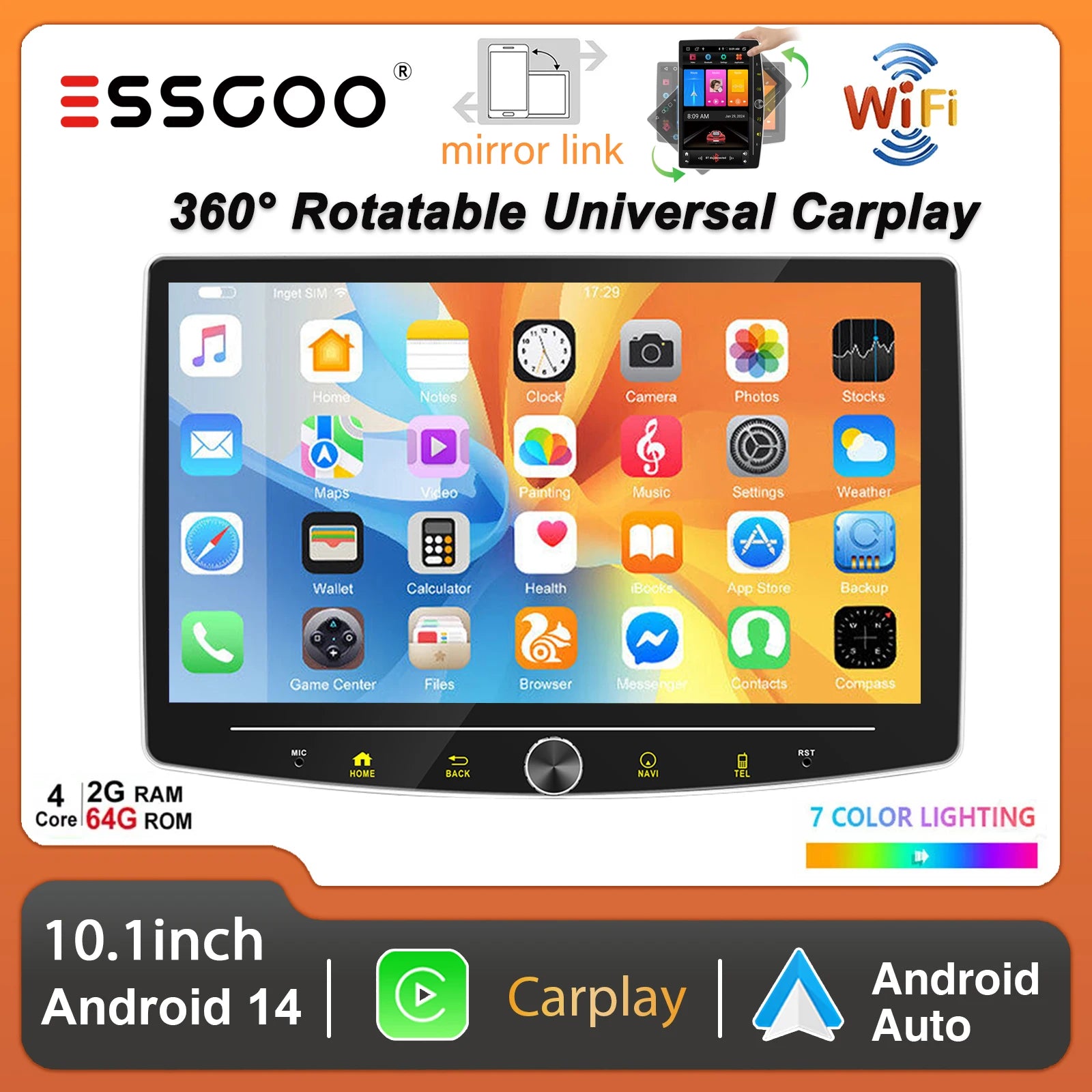 【10.1" Android 14 Vertical Rotatable Car Stereo】This single din car stereo with high-definition 10.1 inch 2.5D tempered glass mirror touch screen,and which can be rotated by 180°.You can adjust the screen manually to make it display vertically or horizontally. Give you the most comfortable visual and touch experience.This car radio installation size is: 178(L)* 50(W)*145(D)mm.Please confirm whether the size is appropriate before buying.
