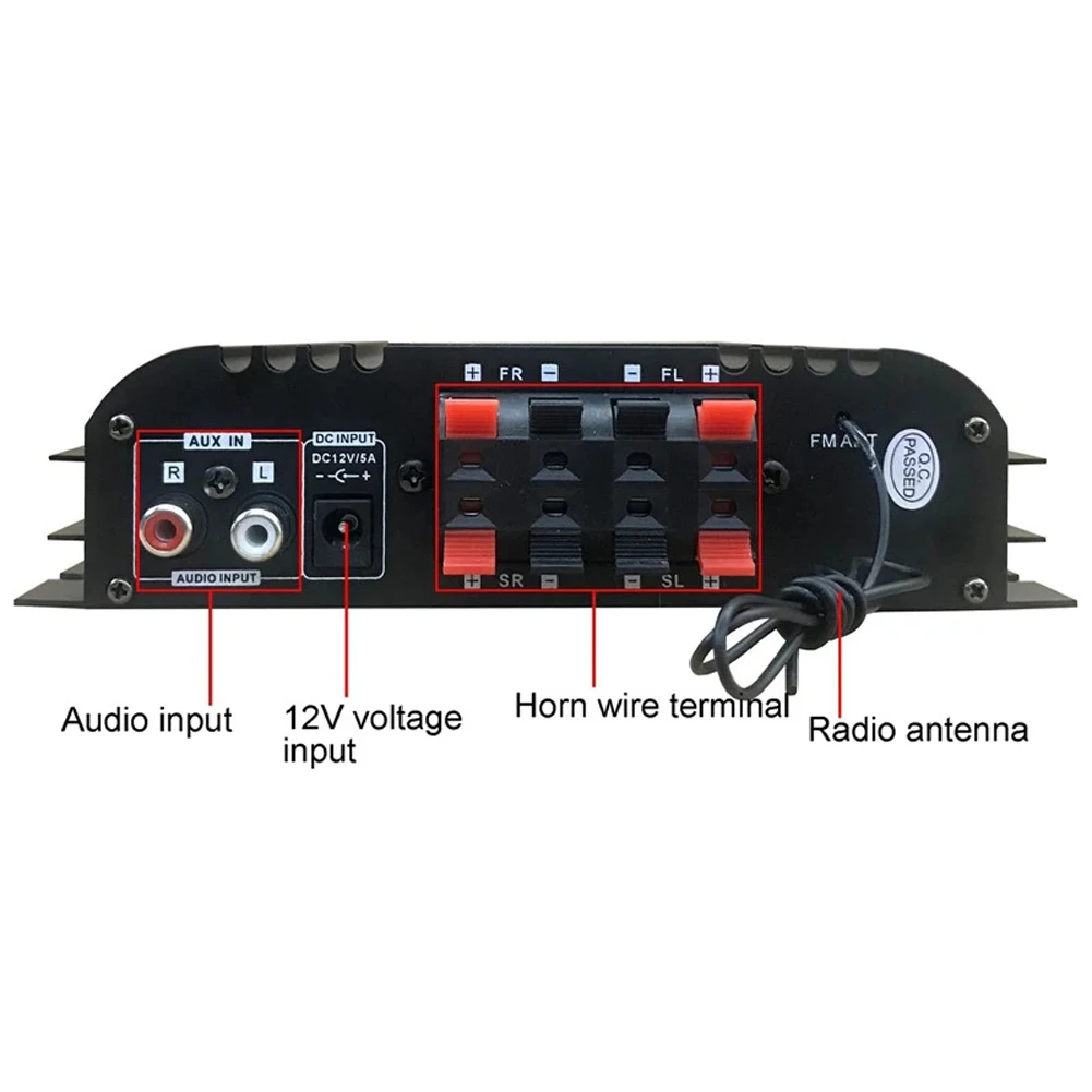 5. Enhanced Sound Controls: Tailor your audio experience with the home car power amplifier that comes with additional features to enhance your listening pleasure, including volume control, bass, and treble adjustments. These controls allow you to fine-tune the sound to match your taste, providing a customized audio experience whether you're at home or on the go.