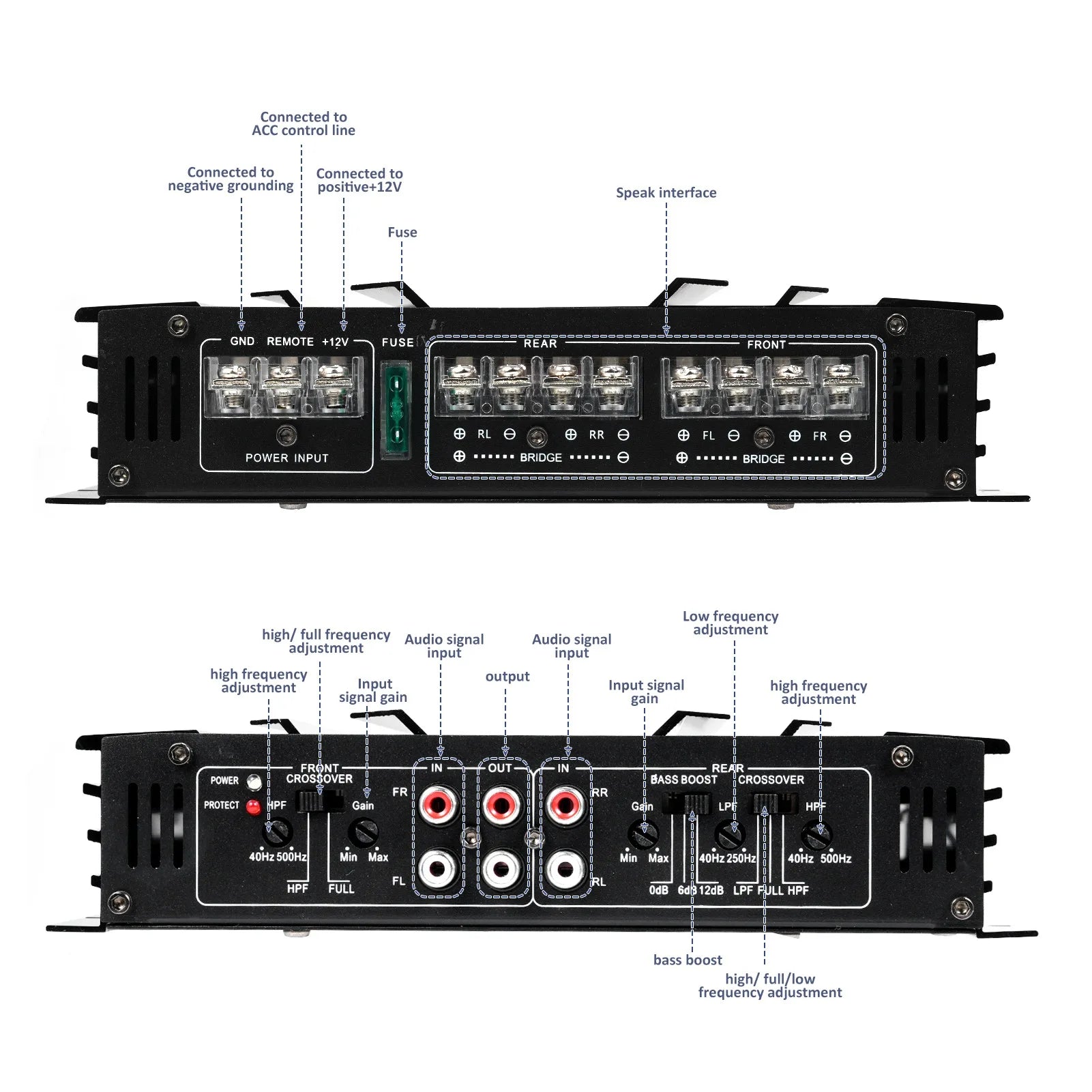 1. 5800W high-power car amplifier can effectively improve the sound quality of car audio and bring a nice experience to users.2. It can amplify the weak signal from the audio source or pre-amplifier, without changing the sound quality, and promote the sound of the speaker.