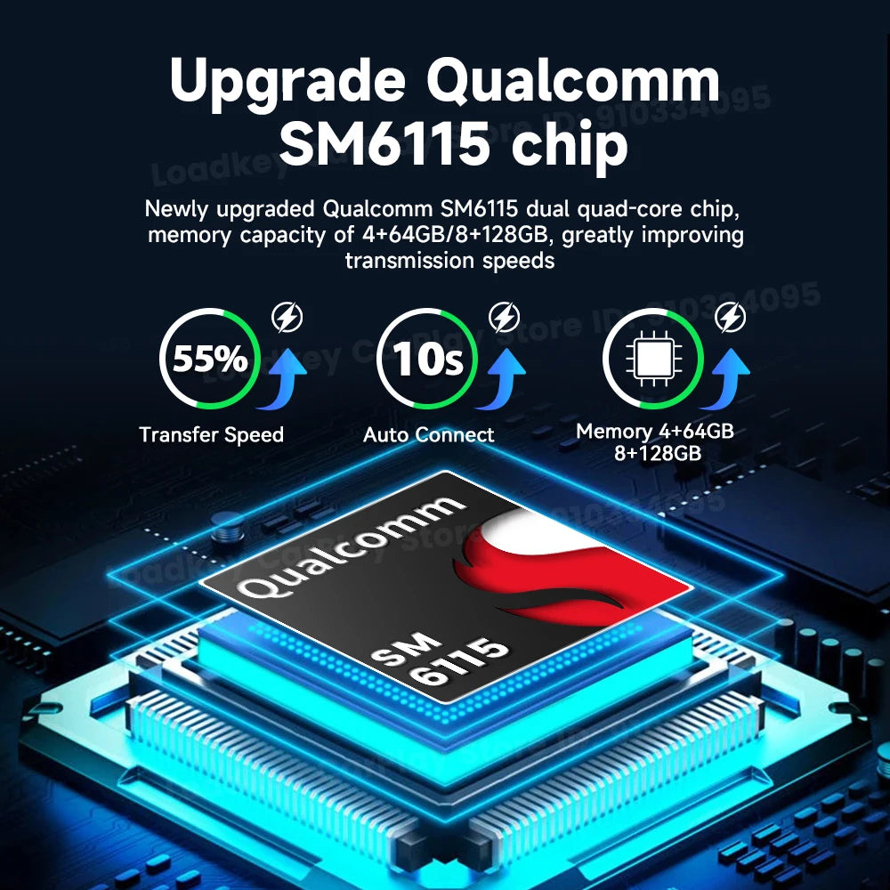 ✅ Android 13.0 system, wireless CarPlay, wireless Android Auto in one. Original genuine Qualcomm 6115, information shows that compared to 2290, 6115 chip performance is more stable, faster, lower energy consumption, 8-core processor!