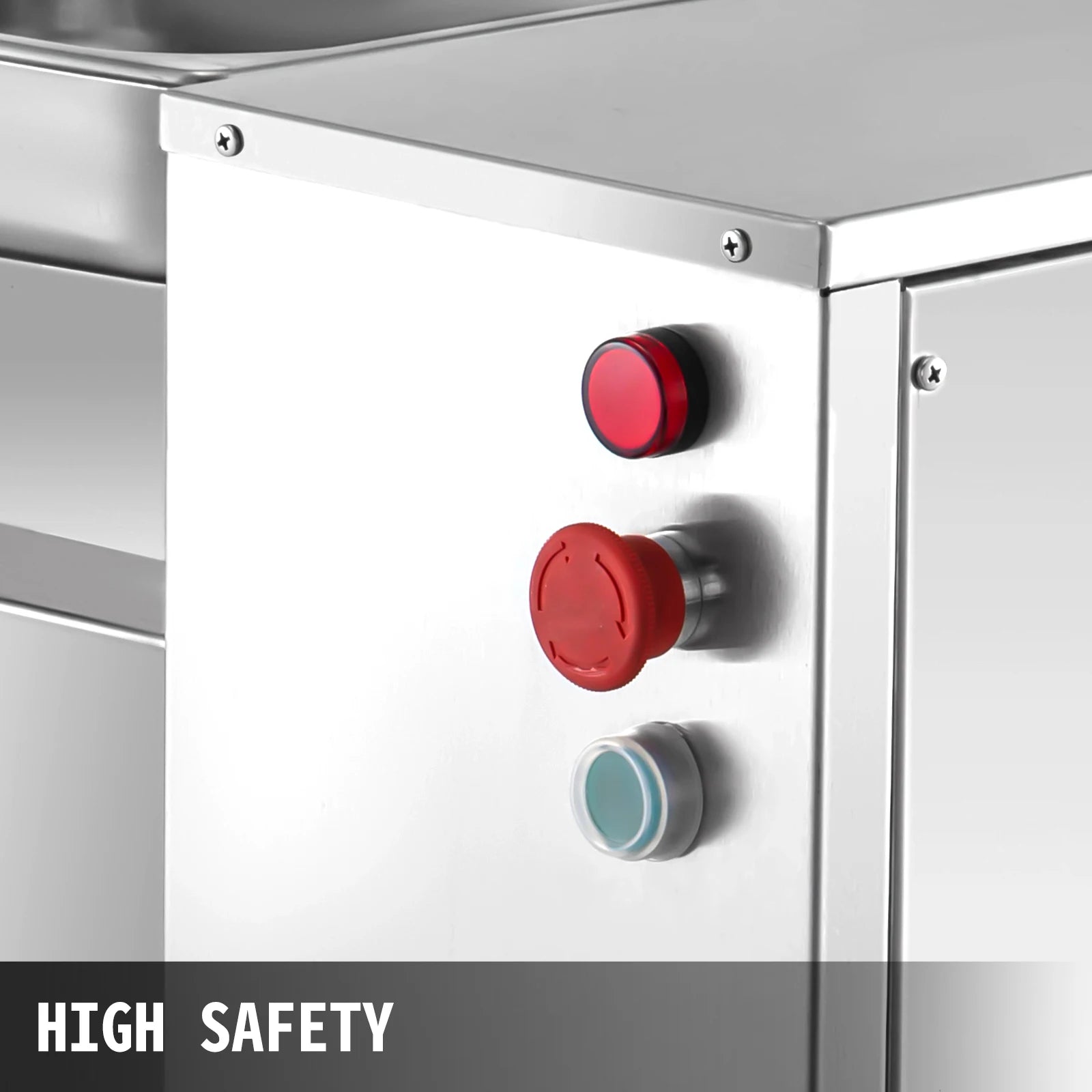 Designed with a raised feeding port to keep your hands safe and a red emergency stop switch for immediate halting, reducing potential safety risks during operation.