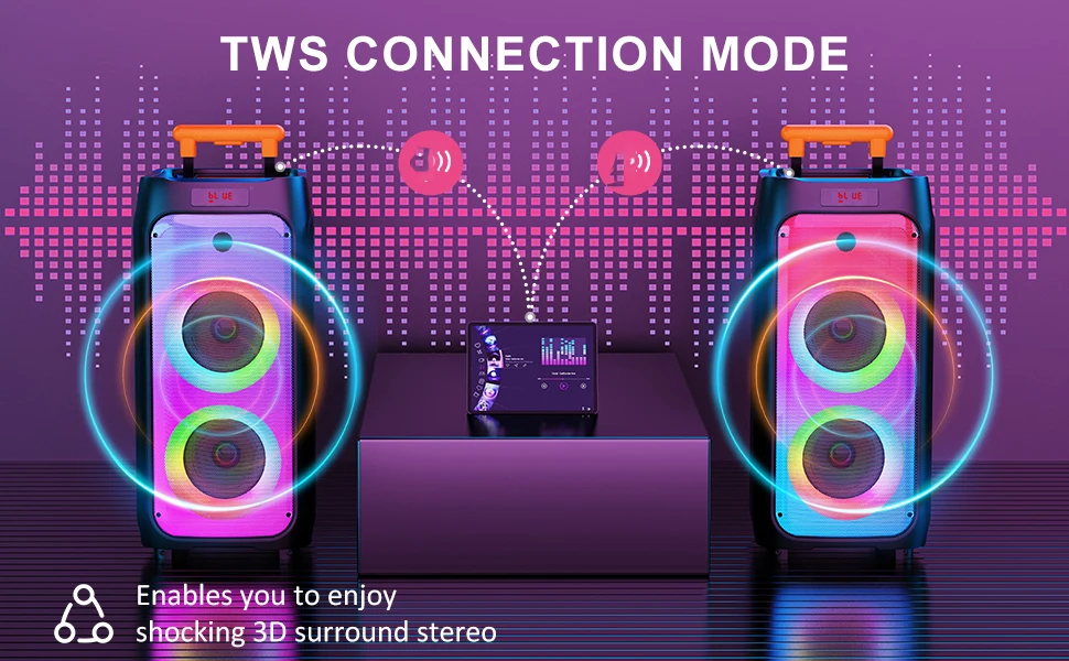 Dual audio pairing system, living room into a theater, wireless stereo sound, from all sides will surround you, to create a stunning LIVE listening experience, a sense of presence.