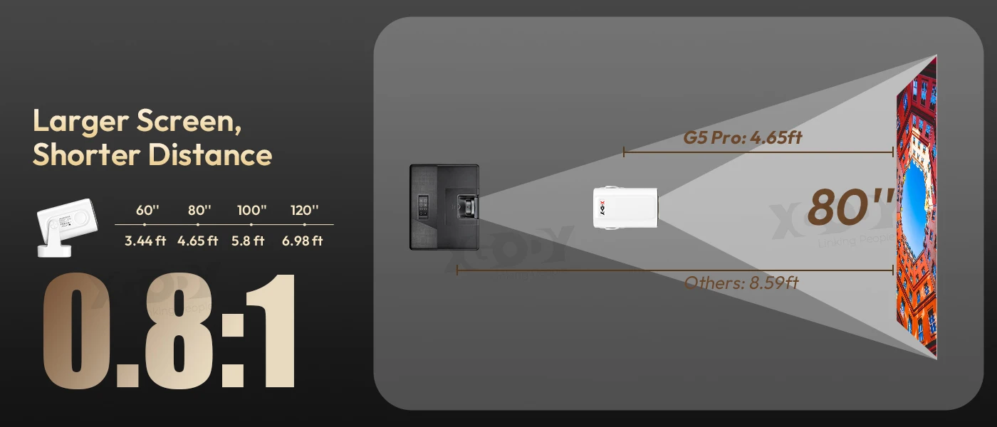 With Auto-Keystone,You can Adjust vertical and horizontal image easily. You can adjust the projected image from 100% to 75% without moving the projector. Allow the Projector to Adapt to different environment.