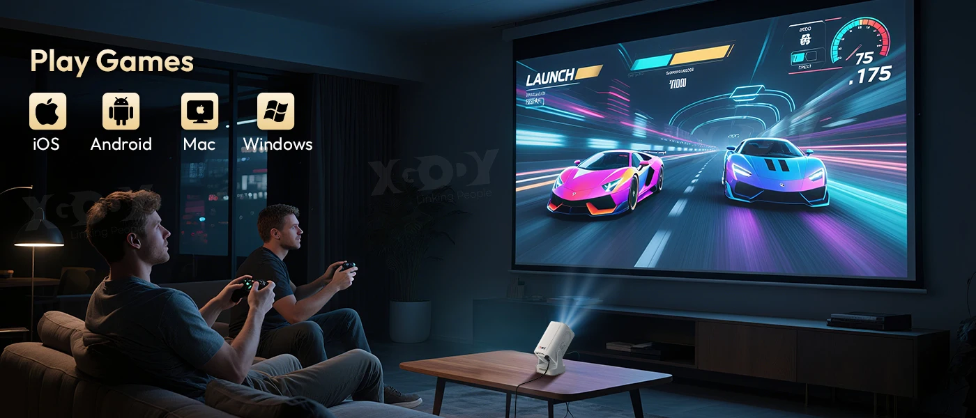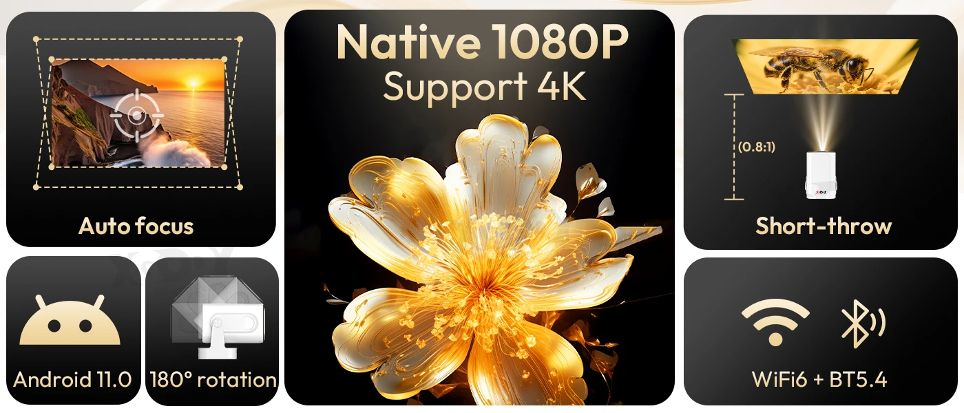 XGODY Gimbal 5 PROAndroid 11-Projektor 4K Native 1080P Autofokus 330ANSI Dual Wifi BT5.4 Air Mouse Voice Home Outdoor Movie