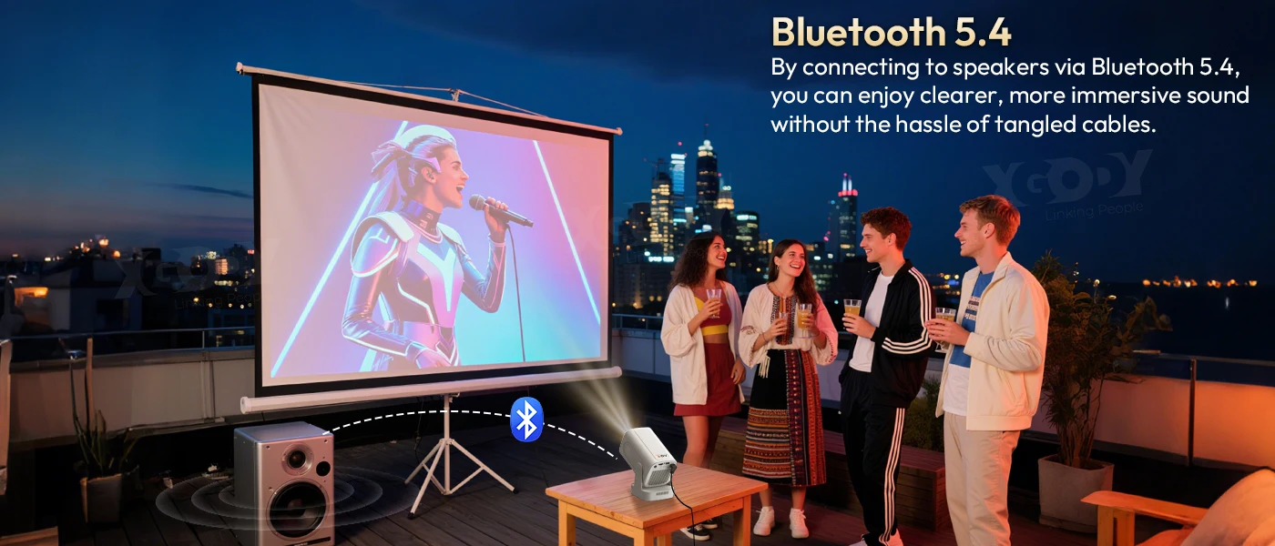 Enjoy fast and stable connections with the dual-band 5G/2.4G WiFi and Bluetooth 5.0 capabilities of our projector. Whether you're streaming content, playing games, or connecting external devices, you can count on seamless performance without any buffering or lagging issues.Apart from that, you can also easily connect your various devices using the projector’s built-in HDMI, USB, and 3.5mm earphone ports.